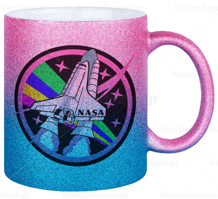 NASA pink, Κούπα Χρυσή/Μπλε Glitter, κεραμική, 330ml