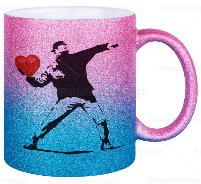 Banksy (The heart thrower), Κούπα Χρυσή/Μπλε Glitter, κεραμική, 330ml