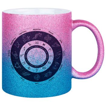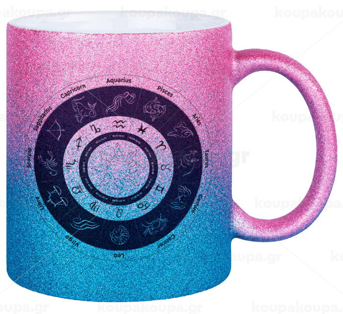 Ζωδιακός κύκλος, Κούπα Χρυσή/Μπλε Glitter, κεραμική, 330ml