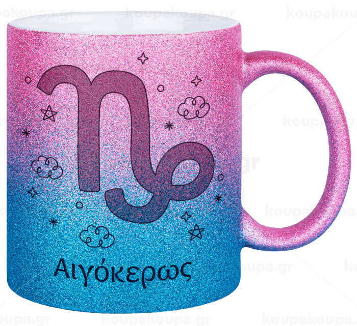 Ζώδια Αιγόκερως, Κούπα Χρυσή/Μπλε Glitter, κεραμική, 330ml