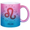 Ζώδια Λέων, Κούπα Χρυσή/Μπλε Glitter, κεραμική, 330ml