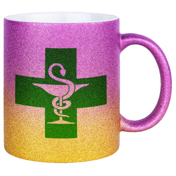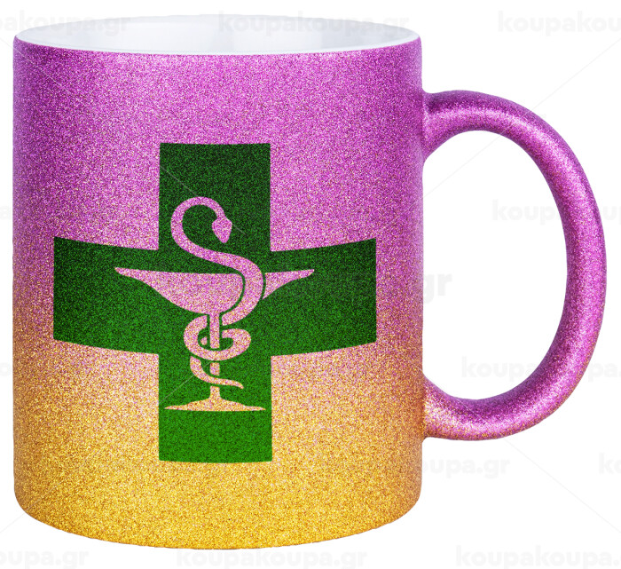 Φαρμακείο, Κούπα Χρυσή/Ροζ Glitter, κεραμική, 330ml