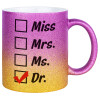 Miss, Mrs, Ms, DR, Κούπα Χρυσή/Ροζ Glitter, κεραμική, 330ml