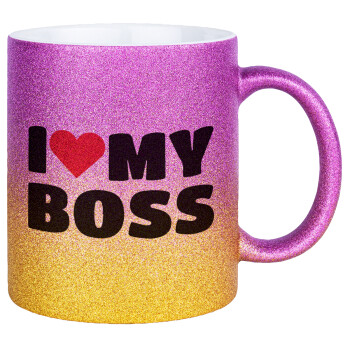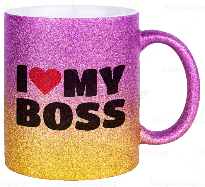 I LOVE MY BOSS, Κούπα Χρυσή/Ροζ Glitter, κεραμική, 330ml