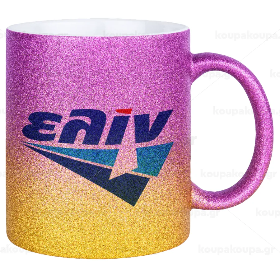 Πρατήριο καυσίμων ΕΛΙΝ, Κούπα Χρυσή/Ροζ Glitter, κεραμική, 330ml