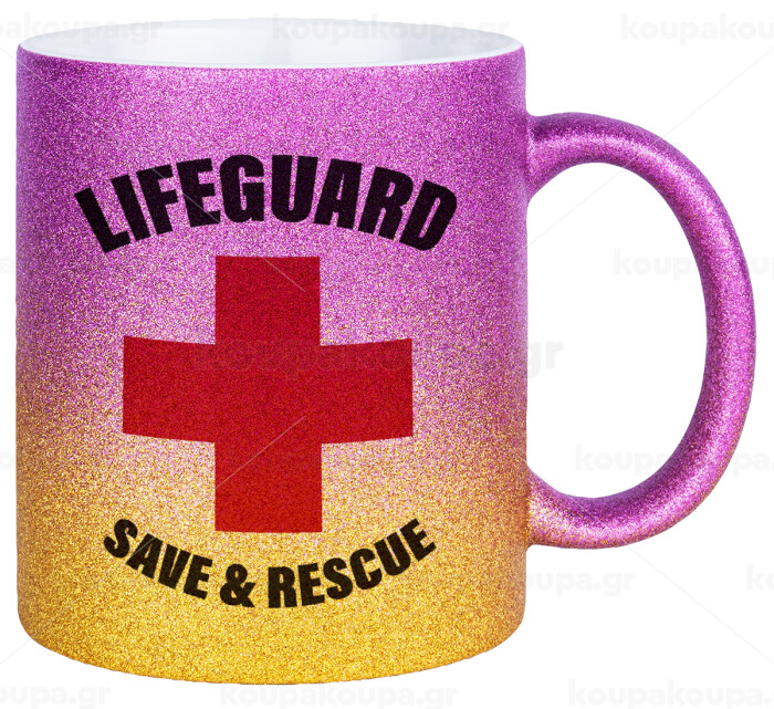 Lifeguard Save & Rescue, Κούπα Χρυσή/Ροζ Glitter, κεραμική, 330ml