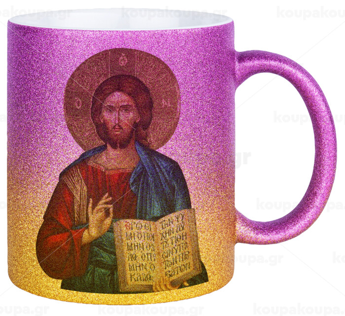 Jesus, Κούπα Χρυσή/Ροζ Glitter, κεραμική, 330ml