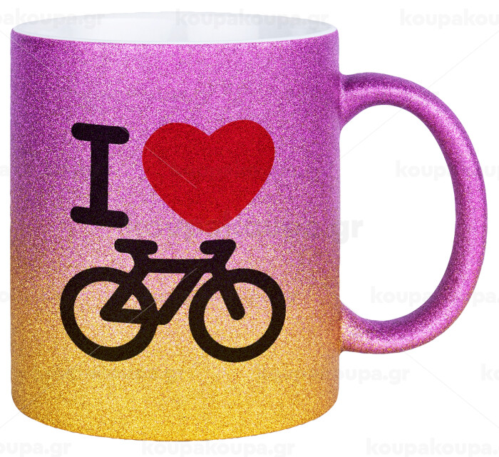 I love Bike, Κούπα Χρυσή/Ροζ Glitter, κεραμική, 330ml