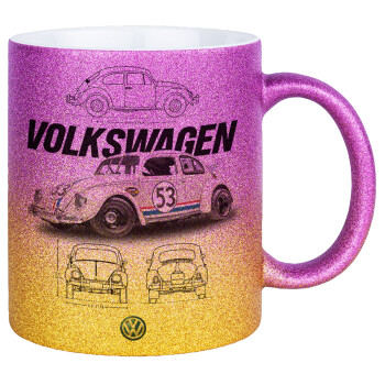 Volkswagen Beetle, Κούπα Χρυσή/Ροζ Glitter, κεραμική, 330ml