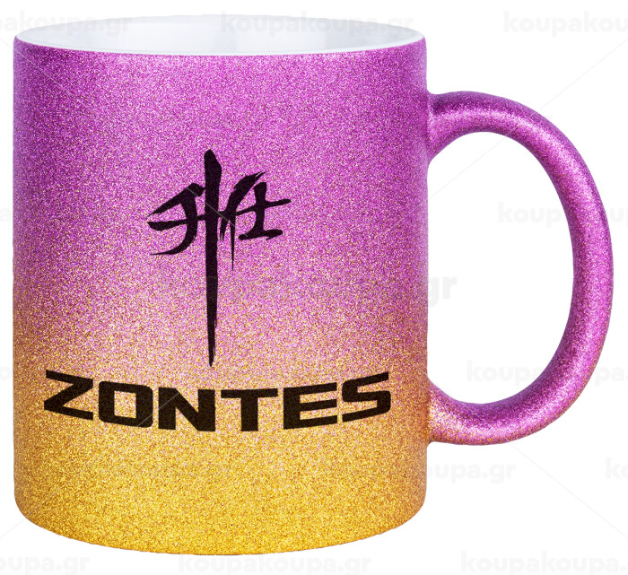 ZONTES, Κούπα Χρυσή/Ροζ Glitter, κεραμική, 330ml