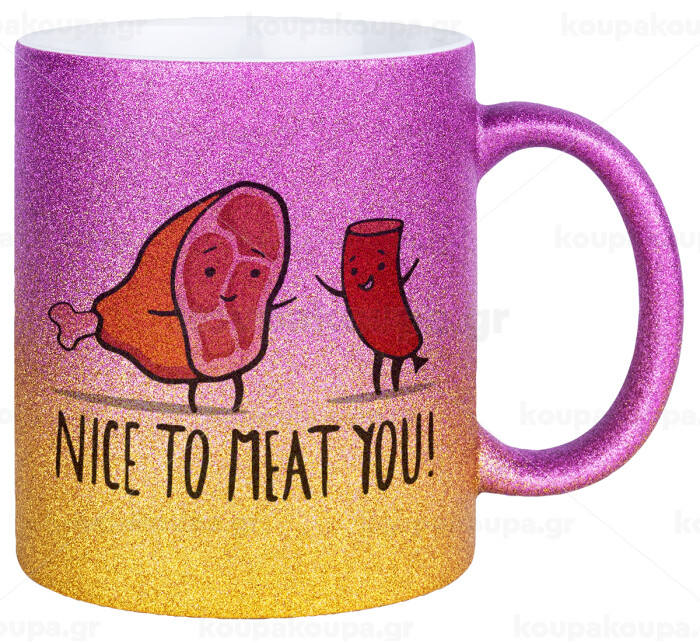 Nice to MEAT you, Κούπα Χρυσή/Ροζ Glitter, κεραμική, 330ml