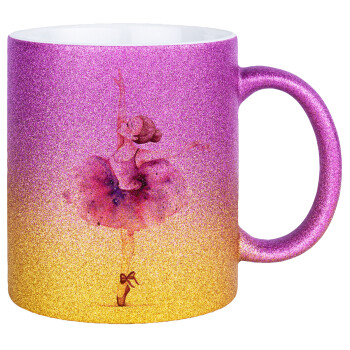 Ballerina watercolor, Κούπα Χρυσή/Ροζ Glitter, κεραμική, 330ml