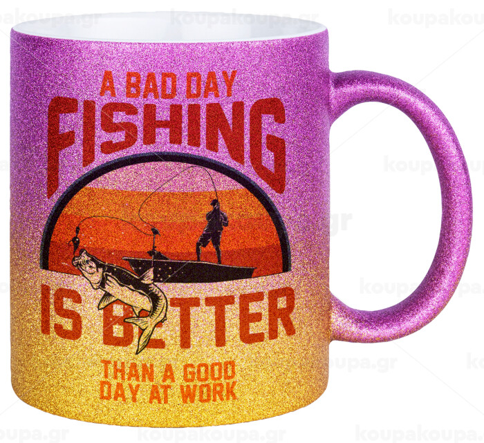 A bad day FISHING is better than a good day at work, Κούπα Χρυσή/Ροζ Glitter, κεραμική, 330ml
