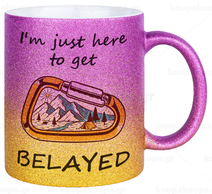 I'm just here to get Belayed, Κούπα Χρυσή/Ροζ Glitter, κεραμική, 330ml