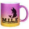 M.I.L.F. Mam i love fishing, Κούπα Χρυσή/Ροζ Glitter, κεραμική, 330ml
