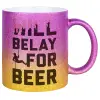 Will Belay For Beer, Κούπα Χρυσή/Ροζ Glitter, κεραμική, 330ml