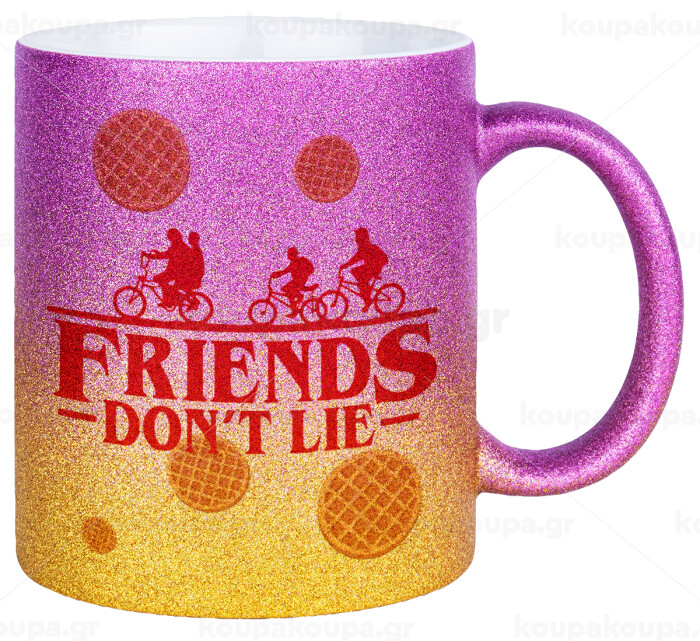 Friends Don't Lie, Stranger Things, Κούπα Χρυσή/Ροζ Glitter, κεραμική, 330ml