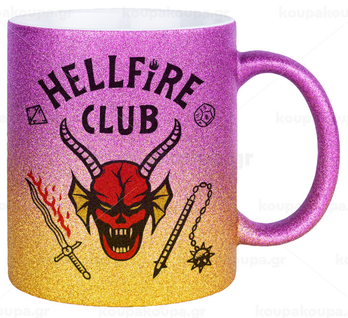 Hellfire CLub, Stranger Things, Κούπα Χρυσή/Ροζ Glitter, κεραμική, 330ml