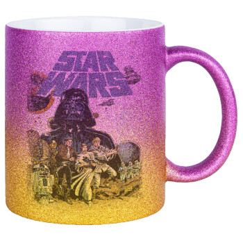 Star Wars, Κούπα Χρυσή/Ροζ Glitter, κεραμική, 330ml