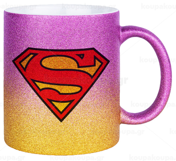 Superman vintage, Κούπα Χρυσή/Ροζ Glitter, κεραμική, 330ml