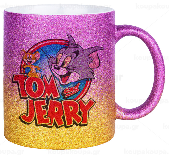 Tom and Jerry, Κούπα Χρυσή/Ροζ Glitter, κεραμική, 330ml