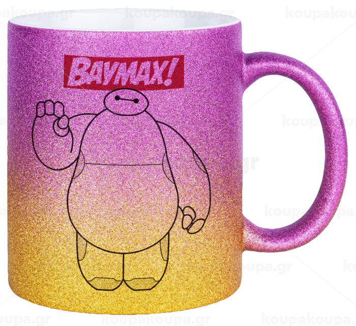 Baymax hi, Κούπα Χρυσή/Ροζ Glitter, κεραμική, 330ml