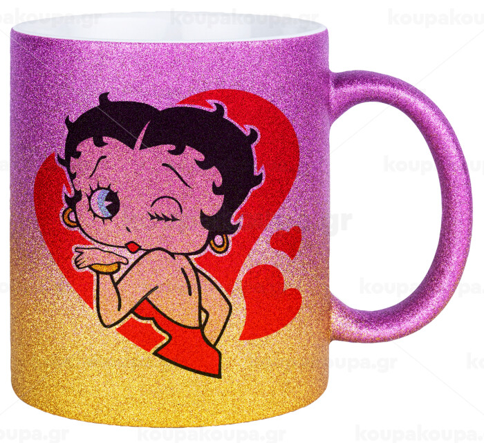 Betty Boop, Κούπα Χρυσή/Ροζ Glitter, κεραμική, 330ml