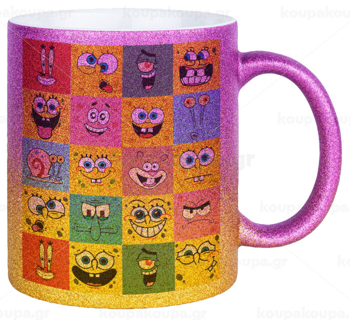 BOB spongebob and friends, Κούπα Χρυσή/Ροζ Glitter, κεραμική, 330ml