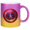 Captain America, Κούπα Χρυσή/Ροζ Glitter, κεραμική, 330ml