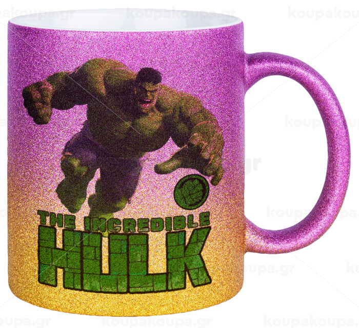 Hulk, Κούπα Χρυσή/Ροζ Glitter, κεραμική, 330ml