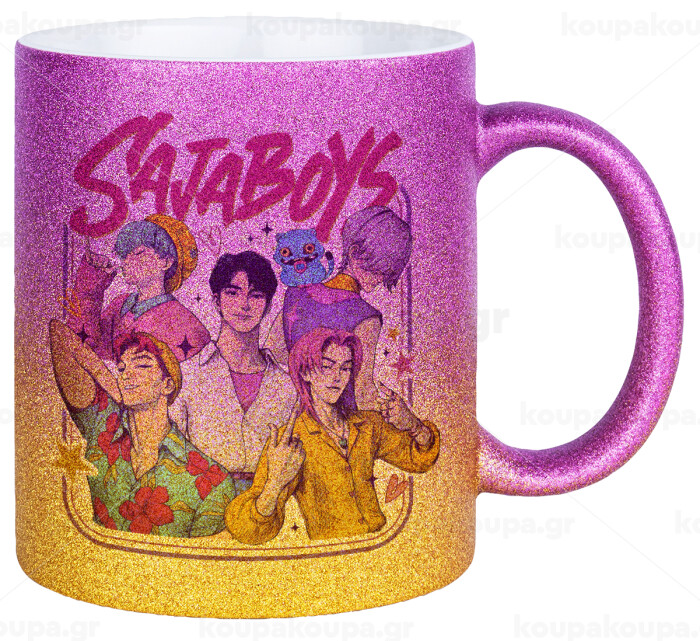 Huntrix Saja Boys, Κούπα Χρυσή/Ροζ Glitter, κεραμική, 330ml