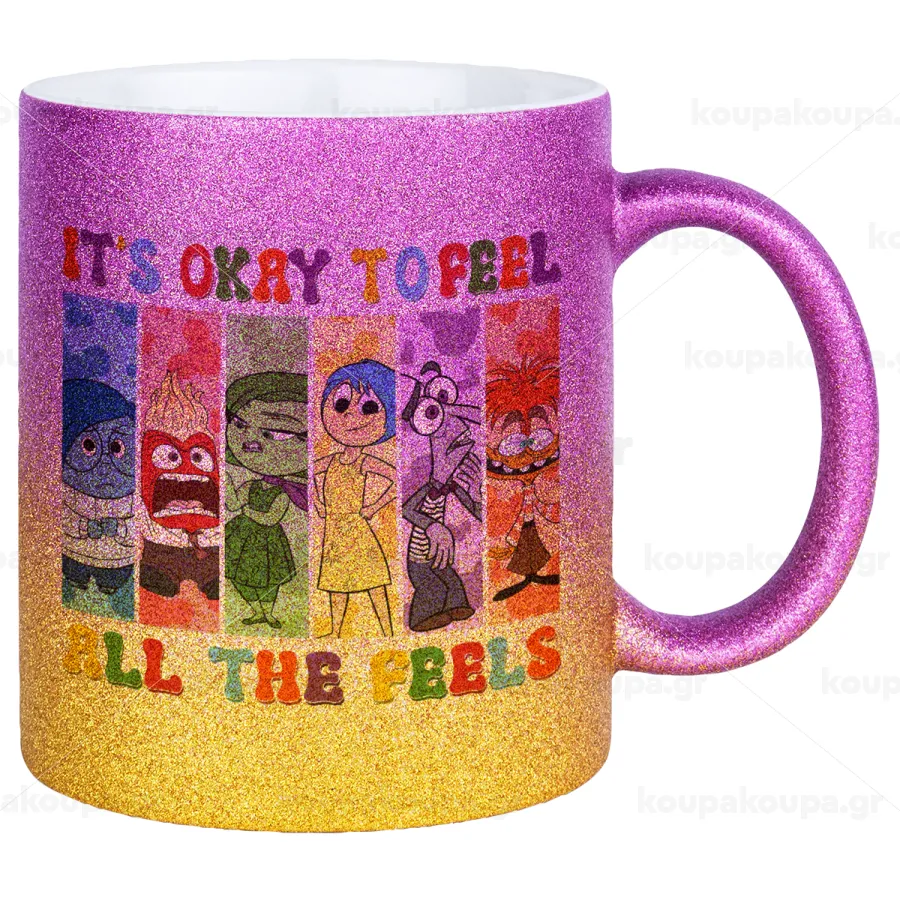 Inside Out It's Okay To Feel All The Feels , Κούπα Χρυσή/Ροζ Glitter, κεραμική, 330ml