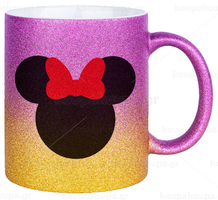Minnie head, Κούπα Χρυσή/Ροζ Glitter, κεραμική, 330ml