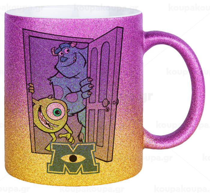 Monster inc, Κούπα Χρυσή/Ροζ Glitter, κεραμική, 330ml