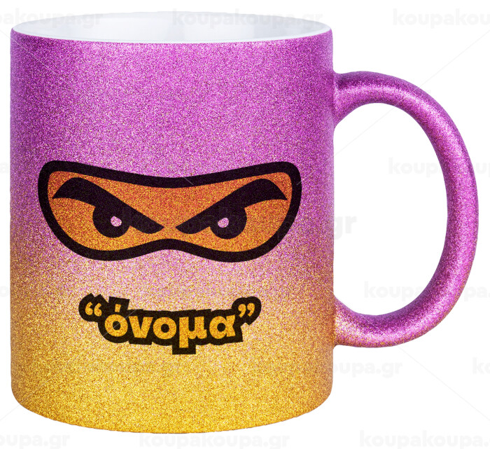 Ninja Eyes με όνομα, Κούπα Χρυσή/Ροζ Glitter, κεραμική, 330ml