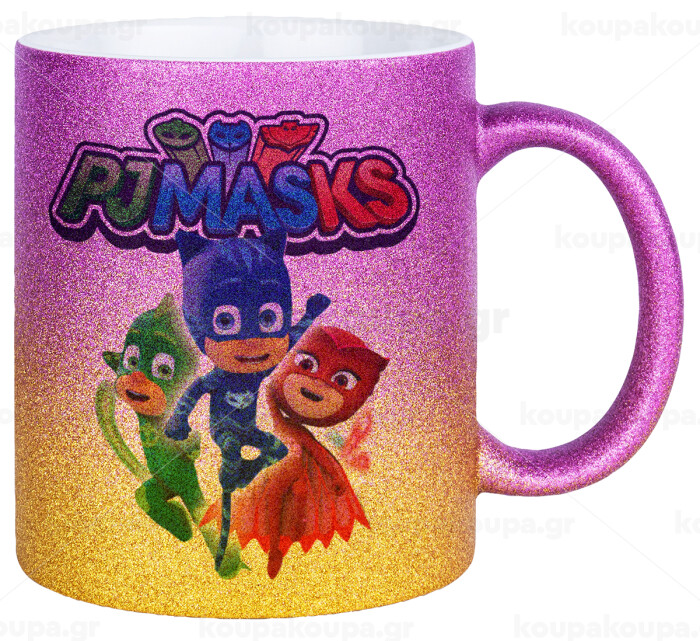 PJ masks, Κούπα Χρυσή/Ροζ Glitter, κεραμική, 330ml