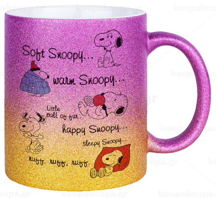 Snoopy manual, Κούπα Χρυσή/Ροζ Glitter, κεραμική, 330ml