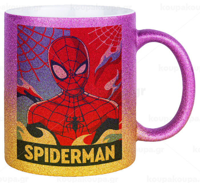 Spiderman kid, Κούπα Χρυσή/Ροζ Glitter, κεραμική, 330ml