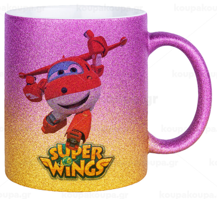 Super Wings, Κούπα Χρυσή/Ροζ Glitter, κεραμική, 330ml