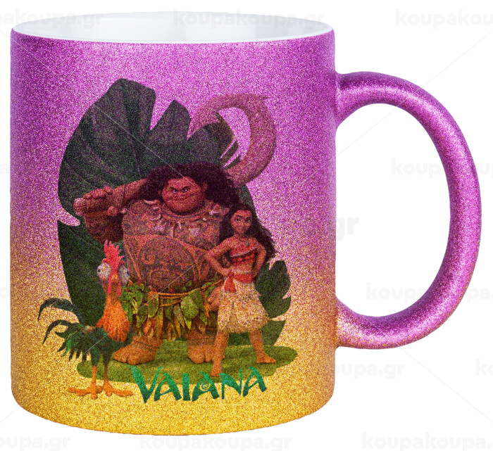 Vaiana, Κούπα Χρυσή/Ροζ Glitter, κεραμική, 330ml