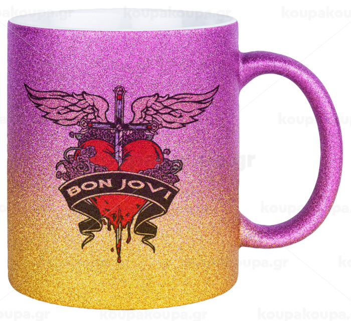 Bon Jovi, Κούπα Χρυσή/Ροζ Glitter, κεραμική, 330ml