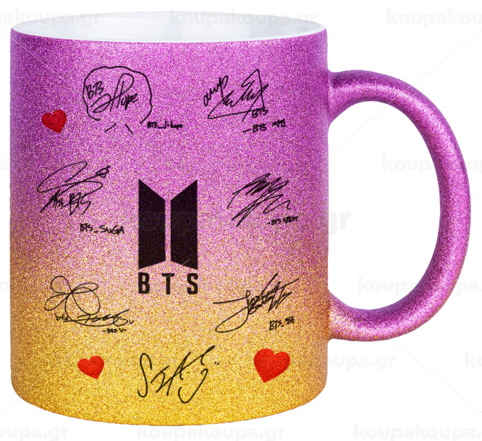 BTS signatures, Κούπα Χρυσή/Ροζ Glitter, κεραμική, 330ml