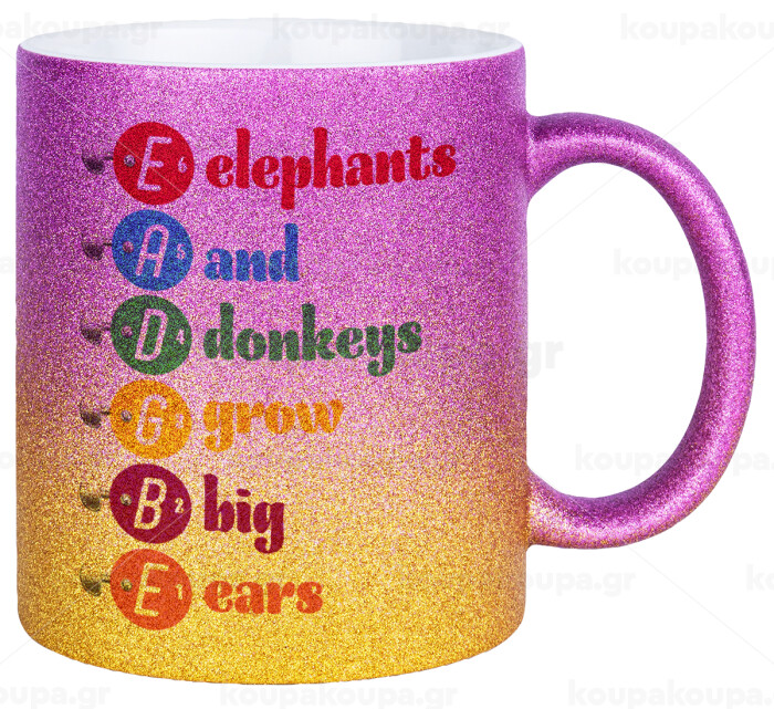 Elephants And Donkeys Grow Big Ears, Κούπα Χρυσή/Ροζ Glitter, κεραμική, 330ml