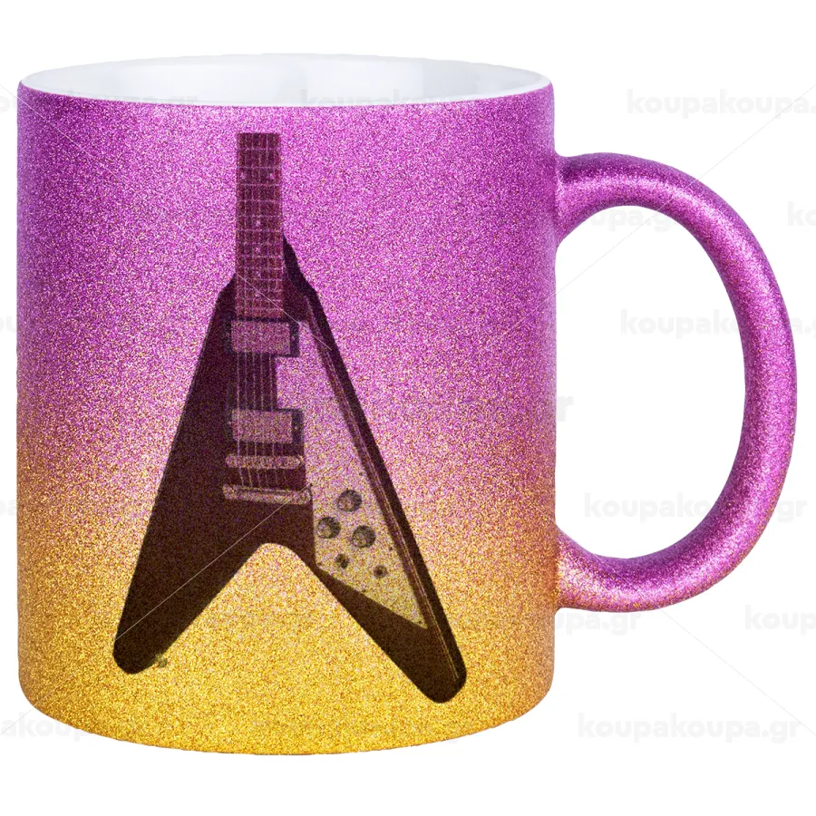 Guitar flying V, Κούπα Χρυσή/Ροζ Glitter, κεραμική, 330ml