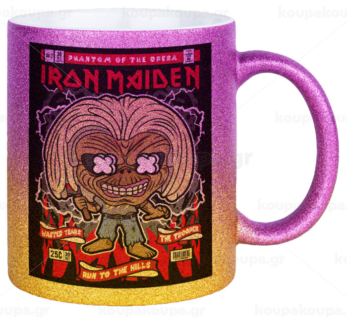 Iron maiden (eddie), Κούπα Χρυσή/Ροζ Glitter, κεραμική, 330ml