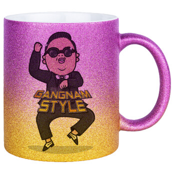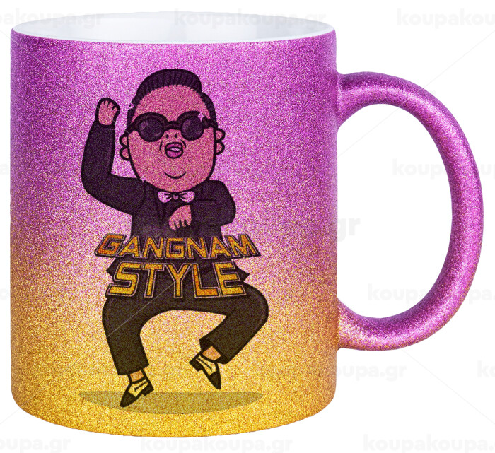 PSY - GANGNAM STYLE, Κούπα Χρυσή/Ροζ Glitter, κεραμική, 330ml
