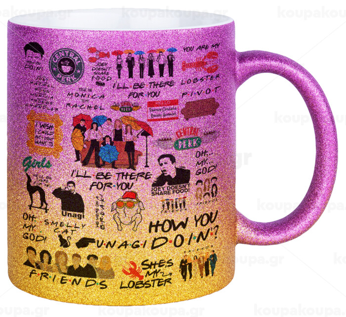 Friends, Κούπα Χρυσή/Ροζ Glitter, κεραμική, 330ml
