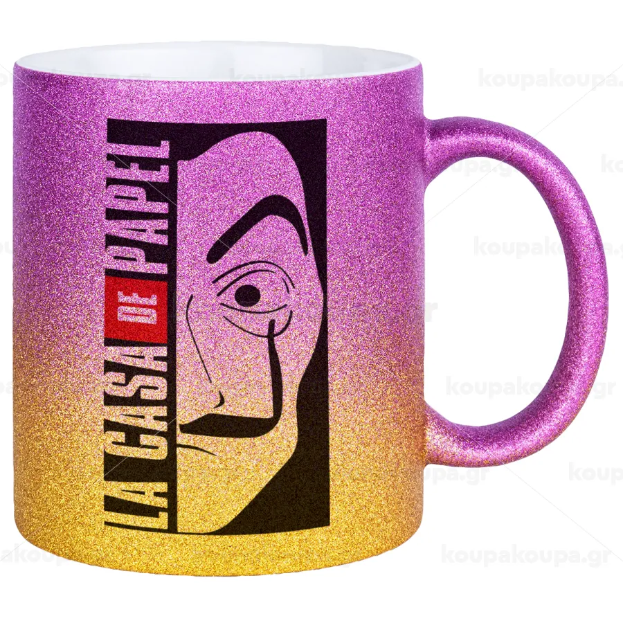 La casa de papel vertical, Κούπα Χρυσή/Ροζ Glitter, κεραμική, 330ml