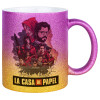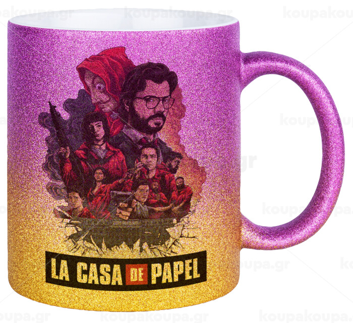 La casa de papel drawing cover, Κούπα Χρυσή/Ροζ Glitter, κεραμική, 330ml
