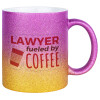 Lawyer fueled by coffee, Κούπα Χρυσή/Ροζ Glitter, κεραμική, 330ml